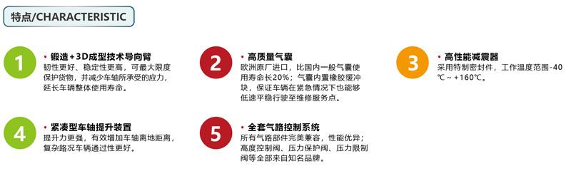 所有气路部件相兼容,性能优异;高度控制阀、压力保护阀、压力限制阀等全部来自优良品名。