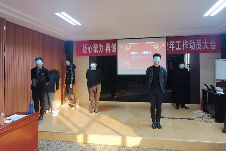 参加训练的人员需要戴上眼罩,打乱顺序,然后听队长指挥站到指定位置上,如果不听指挥放任自己的个性在绝对看不见的情况下完成任务是极难的,7个小组按照要求出色完成了站位。