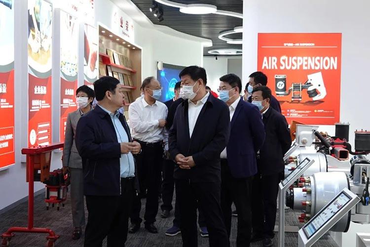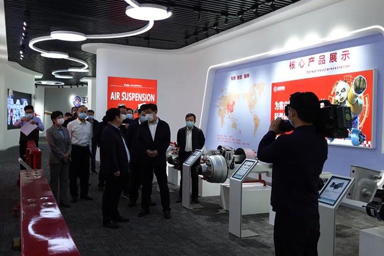 张胜明副市长一行在梁山县县委副书记、县长刘刚,梁山县县委常委、副县长张建芬等相关单位领导的陪同下先后参观了正阳集团系列产品展厅、 智能高端轻量化车桥生产线、专用车精密铸件生产装配车间。