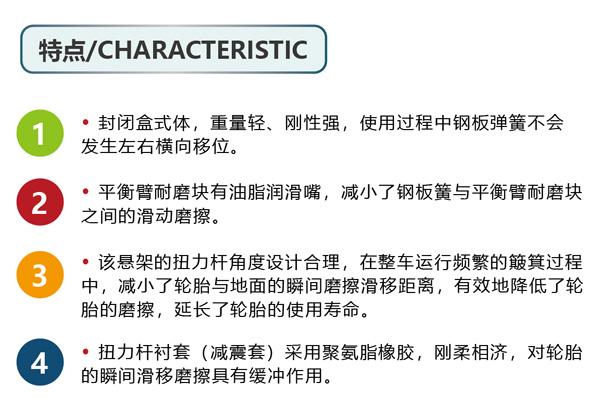产品特点: 载重量大,前后摆角大,适用于各种复杂路况使用;采用焊接式钢体结构,可根据车型定做轮距、和摆角大小。